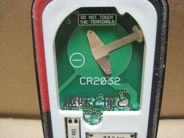 基盤の方には電池の型番が印字されています。電池の型番は「CR2032」です。