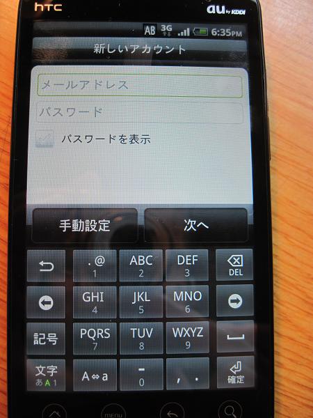 HTCのEVO WiMAX(ISW11HT)のトップにあるメールのアイコン。これは普段つかっているメールと同期させてスマートフォン(ISW11HT)でそのメールアドレス宛てのメールがチェックできるといったアプリなんですが、まずはじめに同期させる為の設定が必要です。