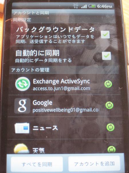 Gmailのアプリにはこのスマートフォンでメインに使うGmailを。そしてメールのアプリではExchange ActiveSyncを使って業務等で使うGmailを同期。これでひとつのISW11HTで仕事用とプライベートが使い分けれます。便利ですね。
