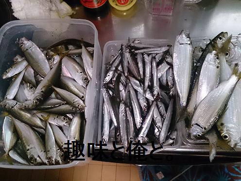 釣果はイワシ75尾、アジ65尾、サッパ22尾、サバ3尾、チヌ1尾。