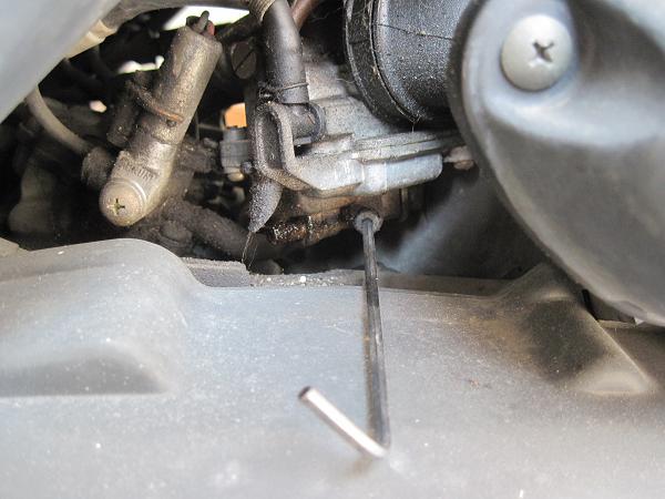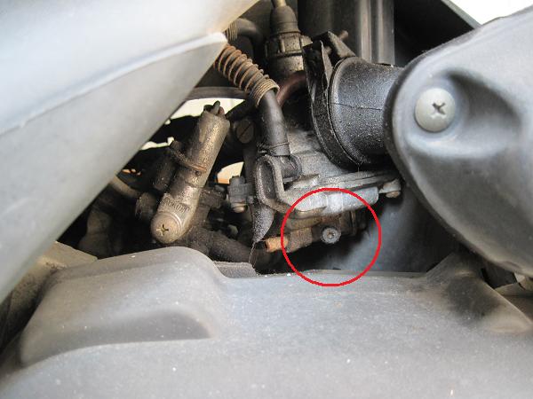 まずはキャブレターの燃料ドレイン(正確な名称不明)のネジを緩める。