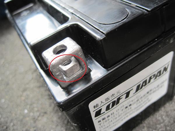 このナットを同じように新しいバッテリーの端子に装着して、あとはボルトを締めるだけ。取り付け時は+端子→-端子の順に。これも重要。