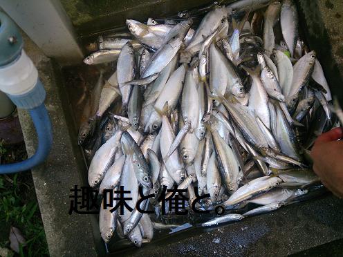 その半数以上がカタクチイワシ。そしてサッパ。あとは豆アジが20尾ぐらいにサバが9尾でした。周りはチヌやサヨリも一尾ずつ釣れてましたね~。一緒にいった連れは2回ほどボラを引っ掛けてましたが、どちらも糸を切られてました・・・。