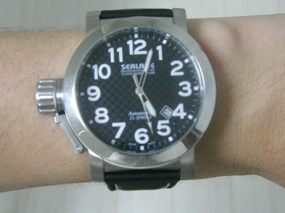 海上安全保障体制を意味する「シーレーン」。戦時中の潜水艦乗務員用にデザインされた腕時計を現代風にアレンジしたミリタリー&カジュアルスポーツの時計らしいです。個人的にはシンプルなデザインにインパクトのある大きなねじ込み式リュウズが気に入ってます。