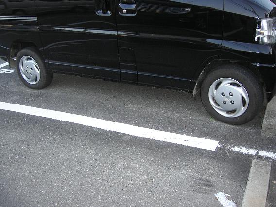 もともとのタイヤは純正のスチールホイールにホイールキャップという組み合わせ。