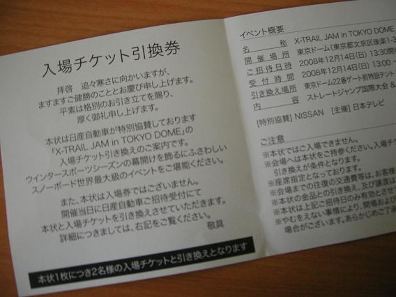 当たったのは14日のストレートジャンプの方です。特別協賛が日産なだけにいい席だといいんですが・・・。今からすでに楽しみです。。
