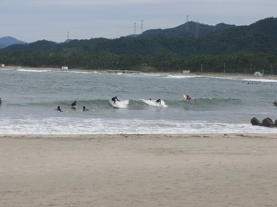 久しぶりの日本海です。予報では頭以上のサイズとのことだったので大丈夫かなぁと思ってましたが、鳥居浜は腰~胸ぐらいで結構遊べましたよ。風が強く海面は荒れてましたが・・・。