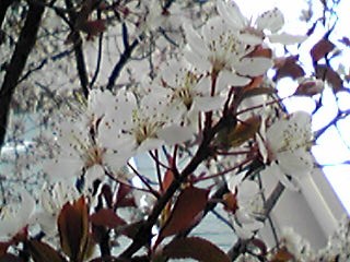 そうそう、テスト開始前に暇だったんで会場の周りをうろうろしてたら桜が咲いてました。早いですねぇ。って本当は桜に似ているほかの花かもしれませんが・・・。ちょっと木の模様がちがったような・・・。