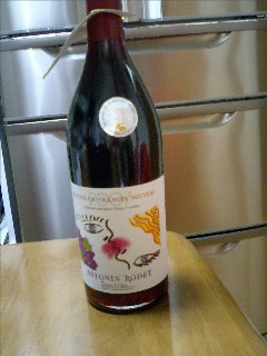 とりあえず、ボージョレー・ヌーボーを求めてお店に行くと、凄いいろんな種類が並んでました。いや~、なんの知識も持ち合わせていなかったので悩むところまでもいきませんでした。適当に目に付いたものをチョイス。早速家に帰って飲んでみました。