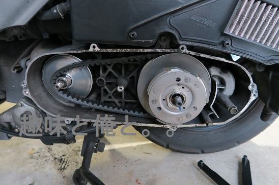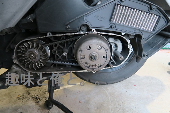 先日、ドライブベルトを交換したばかりなので、ものの数分でカバーを外して、プーリーとクラッチにご対面♪