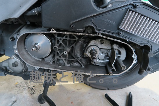 今回はこのユニットを外して、新しいセカンダリーユニットを差し込むだけで交換完了♪とっても楽ちん。純正のセカンダリークラッチユニットを買ったので、当然アウタークラッチは今までのやつを使えます。先日ドライブベルトを交換した際に掃除したので今回はそのまま取り付けて終了。