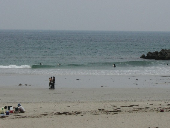 国府の浜について海をチェックしたらかなり穏やか・・・(汗)せっかく来たんだし、とりあえずメインに入水しました。入ってみると割れにくいパワーのない波でのんびりとした感じ。たまにモモぐらいの波が来たり、ごくたまにコシぐらいの波がくるといったようすです。久々なこともありこれぐらいのコンディションの方が疲れることもなく、ほどほどに波に乗れて楽しかったなぁと思いました。天気もよかったしね。