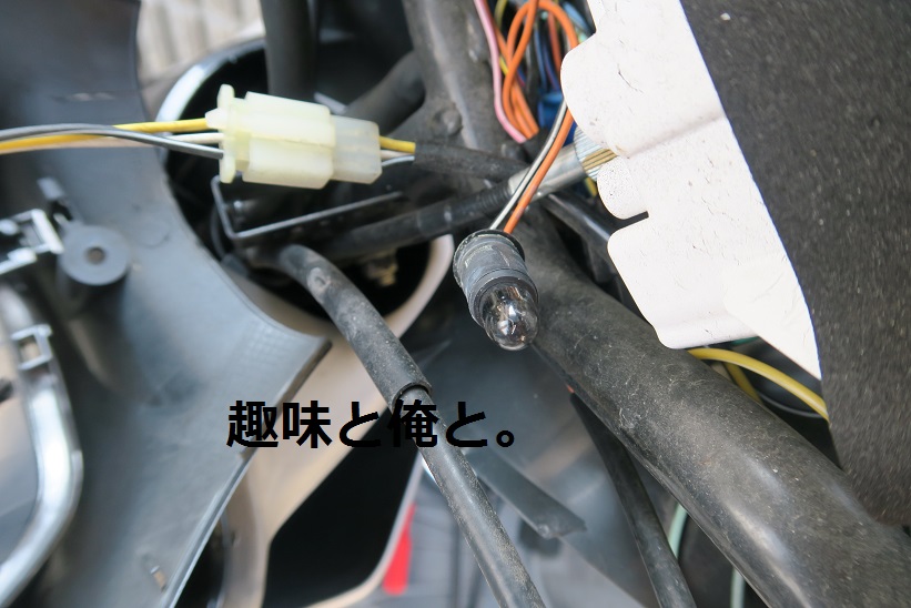 メーター照明用の電球は12V1.7W。近くのホームセンターにはなかなかありませんね。