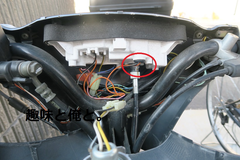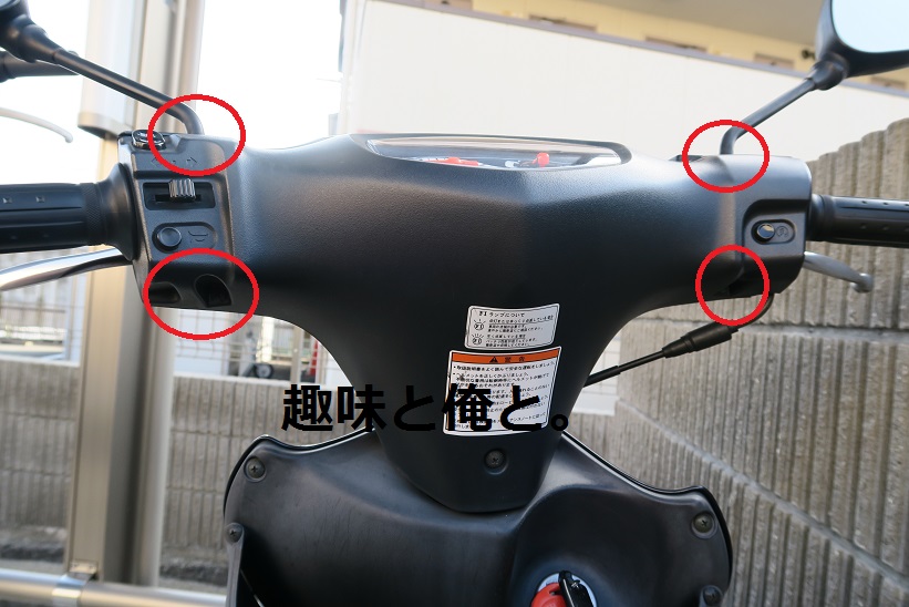 気を取り直して、ハンドル下のネジを左右とも外します。あとはサイドミラーも外しておきましょう。