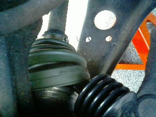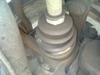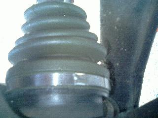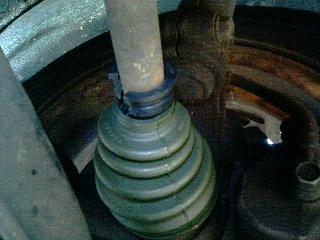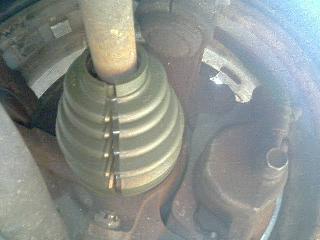 最後は大径部を固定します。このときの方法としては小径部のときと同じです。グロメットの切割部とブーツの接合部が重ならないようにセットした後は、ブーツバンドのナックル部がブーツ接合部と重ならないように、且つバンドの折り返し方向が車両前進時と反対になるようにセットします。最後に大・小径のそれぞれのグロメットとブーツバンドが正しくセットされているか確認して作業完了です。