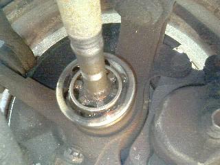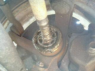 小径部を固定できたら今度は大径部から付属のグリスを注入します。このときジョイント部にグリスの注入口を押し込むようにして全量注入します。補充ができたらジョイント部にブーツを仮セットします。
