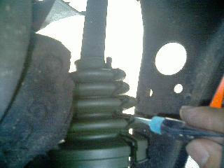 交換するブーツ及びブーツを止めているブーツバンドをカッターやニッパーを使用して取り外します。このときブーツの小径側(中央より)の組付け位置は新・旧ブーツともに同じなので、間違えないようにシャフトにマーキングしておくと便利です。