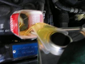 そしてエンジンオイルを規定量入れて完了です。今回はBPのスポーツ走行用のオイルを入れました。やっぱり新しいオイルはきれいですねぇ。
