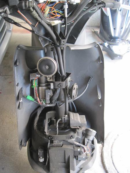 つづいてハンドル部のカウルを外します。外し方は以前ヘッドライトを交換した時のブログを参照してください。