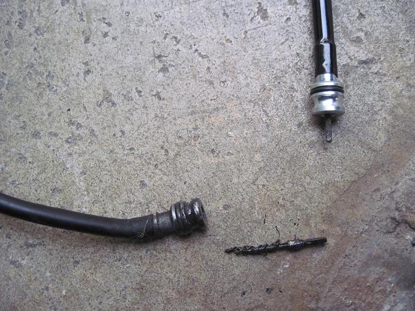 先日、突如として動かなくなったスピードメーターの原因をチェックしたら、スピードメーターケーブルが切れていることが判明。